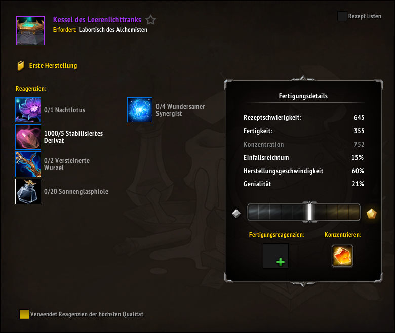 - Fertigkeit bei der Herstellung von (Leeren- und Licht)-Tränken
