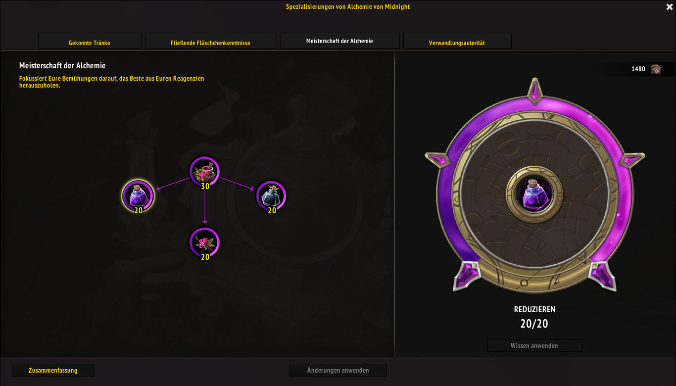 In diesem Retail Berufe-Guide erfährst du, wie du den Beruf Alchemie der Erweiterung Midnight in World of Warcraft schnell und möglichst effizient auf Maximalstufe leveln kannst. Du willst noch einen anderen Beruf skillen? Dann sieh dir doch die Übersicht aller Berufe-Guides an.