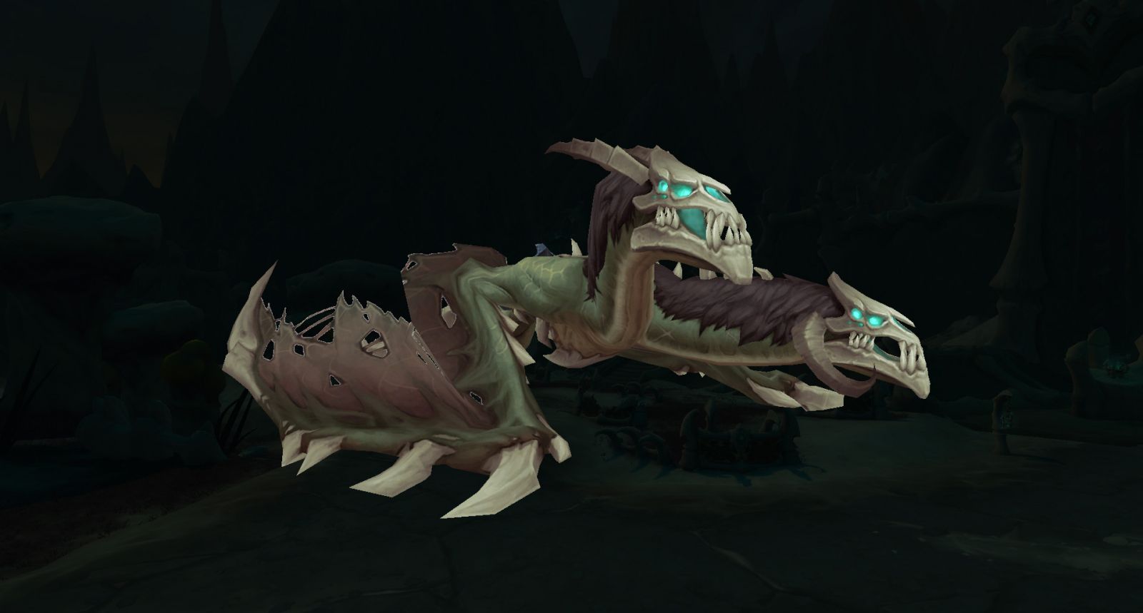 Einige Exemplare können auch wir als Mount mit verschiedenen Farbvarianten bekommen. Wie z.B. Durchgekaute Zügel des kahlen Fledderflügels für eine grünliche Version. Doch dafür musst du etwas Farm-Aufwand betreiben, denn es gilt ein Seuchenberührtes Ei zu finden und aus diesem schlüpft dein Fledderflügel nach 5 Tagen (Realzeit).
