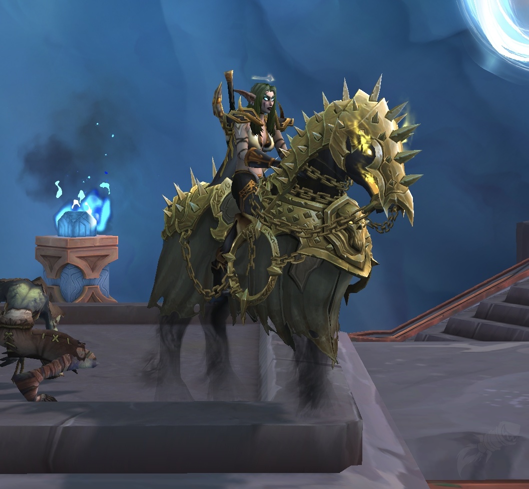 Wer es schafft das Streitross zu jagen und zu besiegen, der kann mit etwas Glück das Mount Zügel des gefallenen Streitrosses erbeuten. Die Dropchance beträgt allerdings nicht 100%, weshalb man die Jagd eventuell öfters wiederholen muss. Viel Erfolg!
