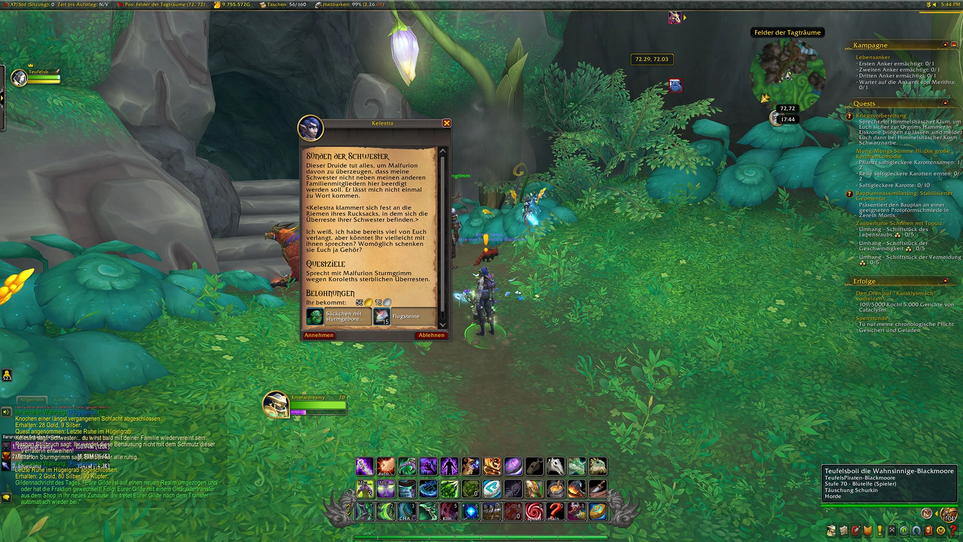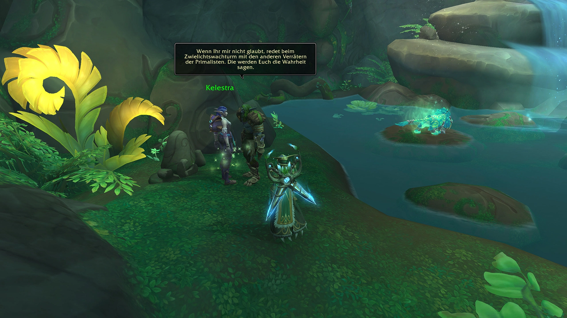 Nach ein paar schnellen kurzen Quests in dieser Zone landet ihr am Ende wieder bei Kelestra mit der Quest Sünden der Schwester. Die belohnt euch mit dem Spielzeug Säckchen mit sturmgeborenen Samenkörner