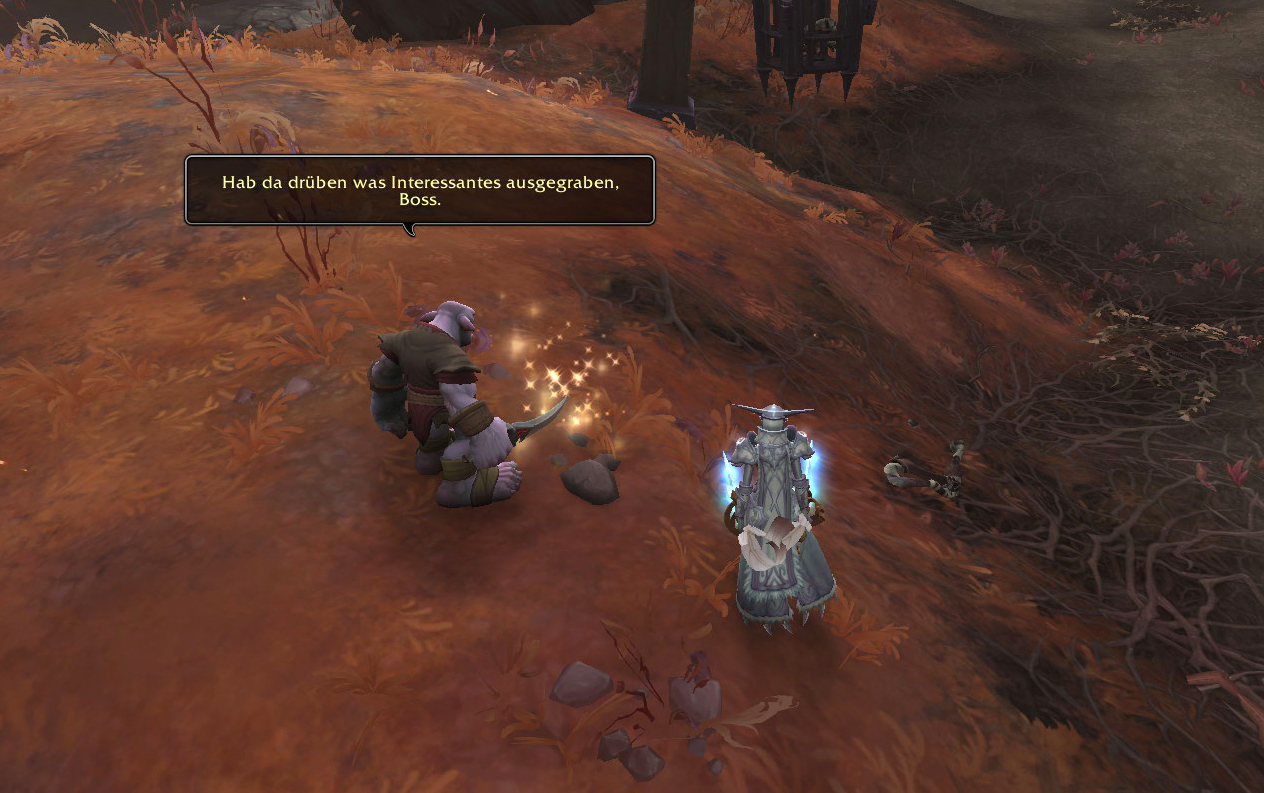 Nachdem Tröpfchen etwas entdeckt habt, klickt ihr diese Ausgrabung an. Ihr werdet kein Beutefenster sehen, sondern der Gegenstand wandert automatisch in euer Inventar.