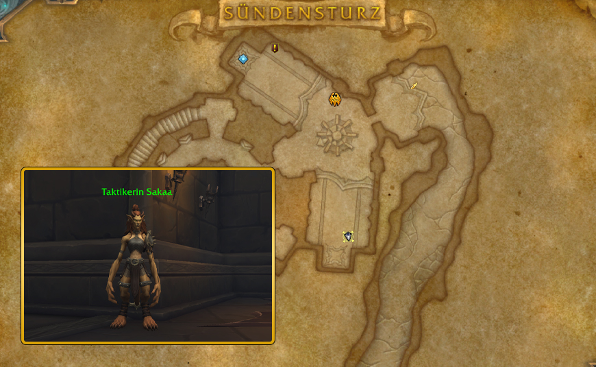 Damit ihr Lucy sammeln könnt, müssen bestimmte Bedingungen gegeben sein. Als Erstes müsst ihr als Ventyr in eure Pakthalle in Revendreth-Sündensturz. In der oberen Ebene befindet sich Taktikerin Sakaa, welche uns die Berufungsquest Ausbildung für unsere Truppen anbietet.