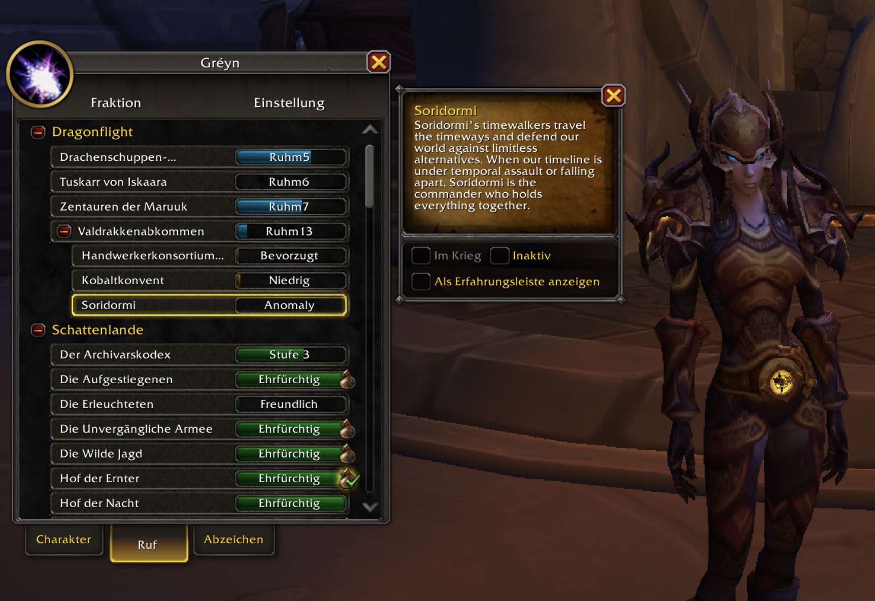 Wie so oft bei den kleineren Fraktionen von Dragonflight, hat auch Soridormi ganz eigene und thematisch passende Rufstufen. Insgesamt fünf Stück und insgesamt müssen 42.000 Rufpunkte gesammelt werden, um die letzte Rufstufe Legende des Multiversums zu erreichen. Wie genau das gemacht wird, erklären wir in den folgenden Abschnitten des Guides.