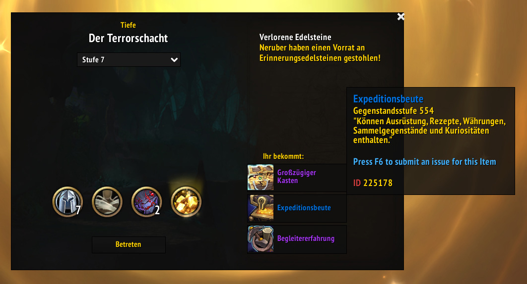 Tiefen können eine großartige Quelle für Ausrüstungsgegenstände sein, die der Ausrüstung aus heroischen oder mythisch+ Dungeons entsprechen. Tiefen sind wie schon erwähnt jetzt ebenfalls Teil der Großen Schatzkammer.