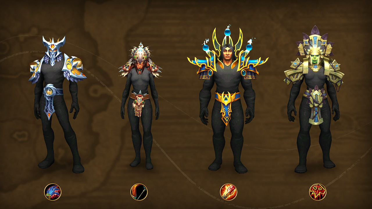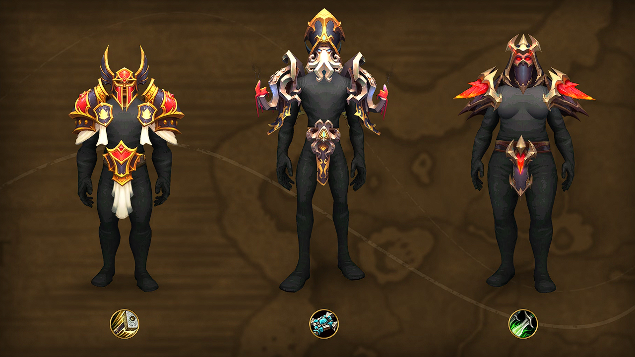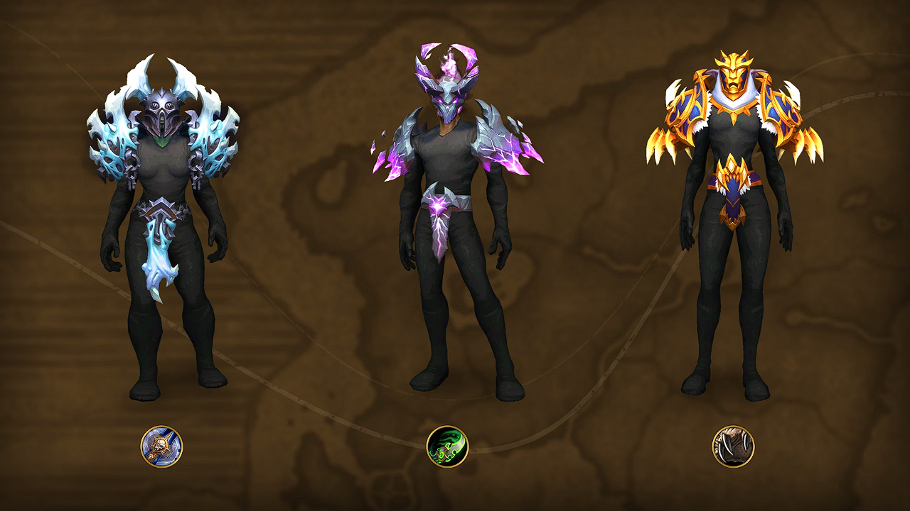Beginnend im September erscheinen bis Dezember jeden Monat neue Transmogrifikationssets für Rüstungen und Waffen speziell für jede Klasse. Jedes Rüstungsset besteht aus drei Teilen: Helm, Schulterrüstung und Gürtel. Jedes Waffenset besteht aus 3 Waffen, die zu den verschiedenen Spezialisierungen passen – die einzigen Ausnahmen bilden Druiden mit 4 und Dämonenjäger mit 2 Waffen.