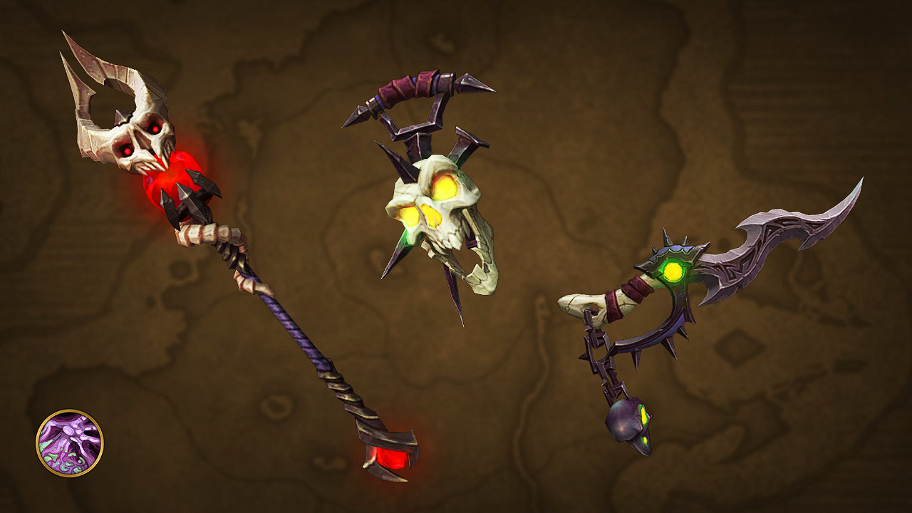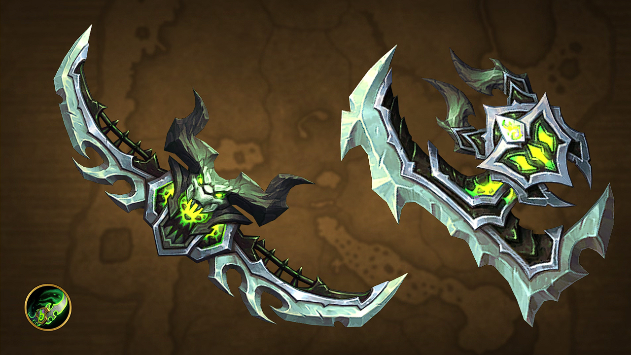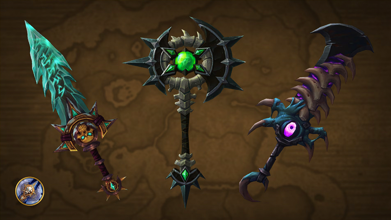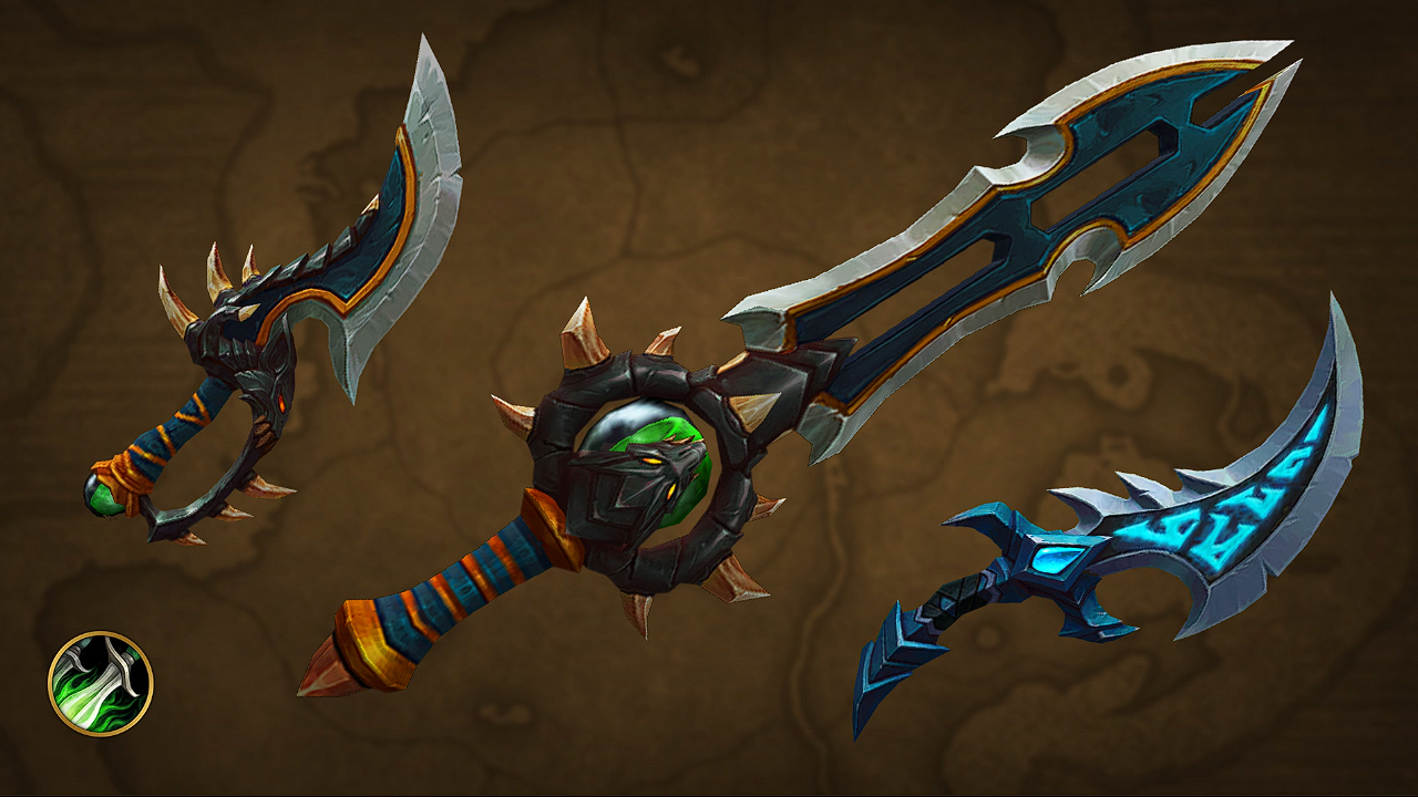Beginnend im September erscheinen bis Dezember jeden Monat neue Transmogrifikationssets für Rüstungen und Waffen speziell für jede Klasse. Jedes Rüstungsset besteht aus drei Teilen: Helm, Schulterrüstung und Gürtel. Jedes Waffenset besteht aus 3 Waffen, die zu den verschiedenen Spezialisierungen passen – die einzigen Ausnahmen bilden Druiden mit 4 und Dämonenjäger mit 2 Waffen.