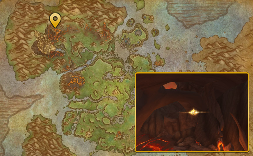Die Drachenglyphe Schmelzofenwindung befindet sich im Norden der Insel auf der Spitz des höchsten Berges.