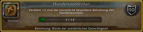 Wusstet ihr schon, dass ihr für 12 Monate Aktivität am Handelsposten einen Erfolg inkl. Transmog-Set bekommt? Zu finden ist dieser Erfolg unter dem Namen Handelspostenfan.